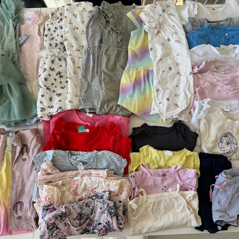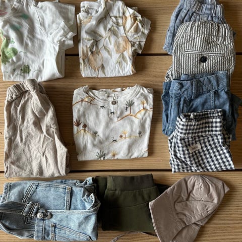 🌸Kjoler, cardigan, denimskjorte, nye ankelsokker, shorts, solhatter.