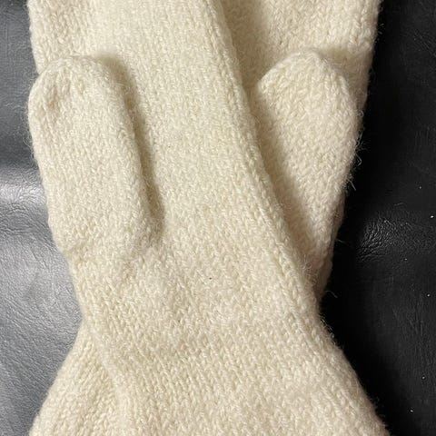 Grå, tovede votter i herrestørrelse selges.