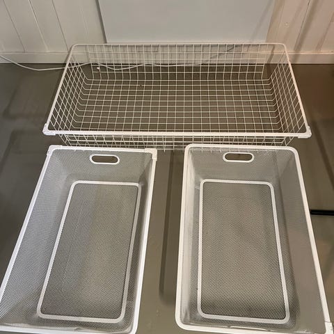 - 11 grå trådkurver passende til de 2 grå trådkurvstativene. Selges for kr 50,- pr. stk.