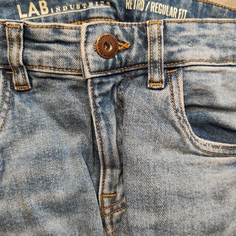 KappAhl LAB Industries jeans for gutt i størrelse 152. Dadfit/relaxed fit. Jeansene er blå og laget i denim-materiale. De har lommer foran og bak, samt beltehemper rundt midjen. Pent brukt.