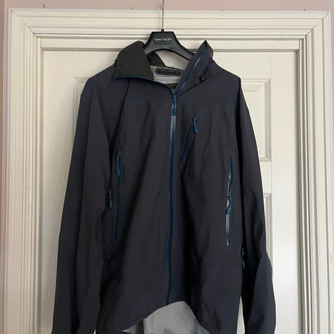 Arc'teryx jakke for herre i størrelse M. Jakken er svart og laget i Gore-Tex-materiale. Den har hette, gjennomgående glidelås foran og glidelåslommer på brystet. Ytterstoffet er vann- og vindtett.ventilasjon under armer med glidelås. Passer til bruk som skalljakke til alpint.