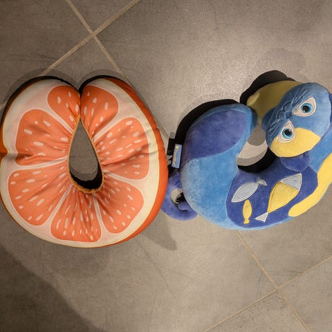To stykk nakkestøtte til reise, barn. Ikke brukt.