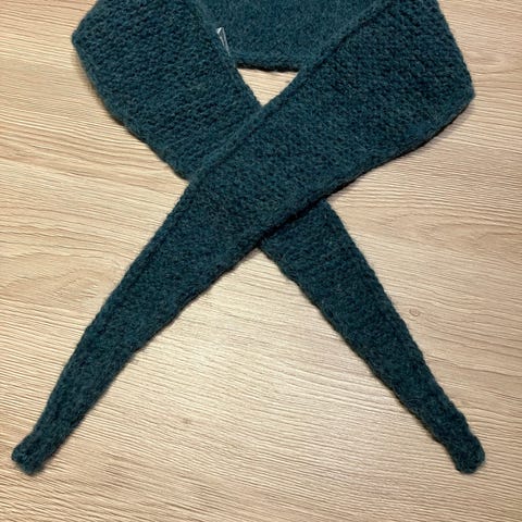Mørk marineblå Sophie scarf av PetiteKnit strikket i Melody fra Drops. Det er et mykt og godt alpakka garn.