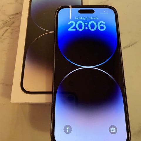 Meget pent brukt iPhone 14 Pro Max i sølvfinish med 256 GB lagringskapasitet selges. Selges grunnet overgang til ny jobbtelefon. Har brukt skjermbeskytter og deksel hele tiden.