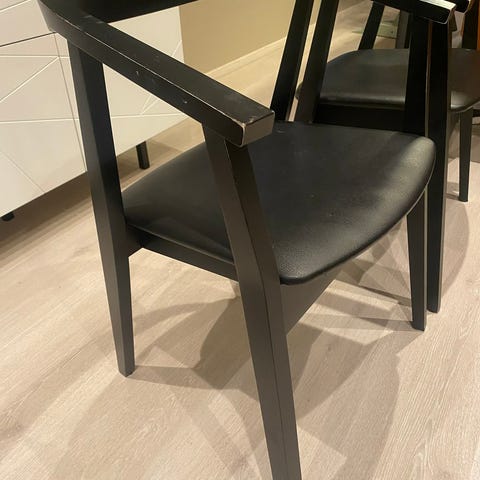 Pent brukt og i god stand. To av stolene har noen mindre, overfladiske slitasjemerker på armlenene (se bilde). Dette har kun kosmetisk betydning og påvirker ikke bruken.