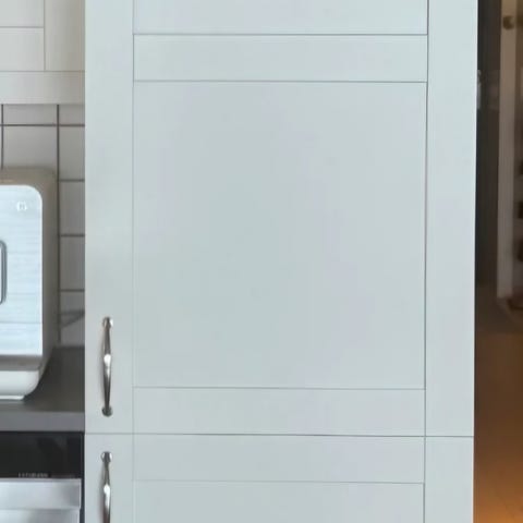 Skapet har en liten skrape i lakken utvendig på venstre side.