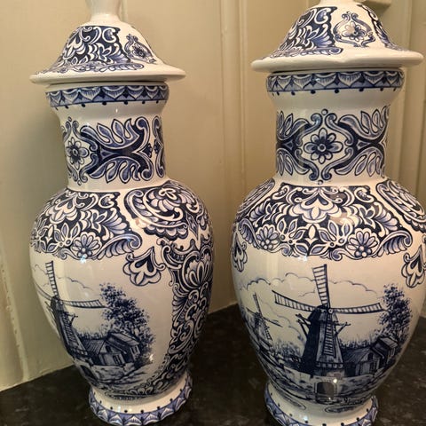 Meget flott og dekorativ krukke / urne merket T. Delft Blu.