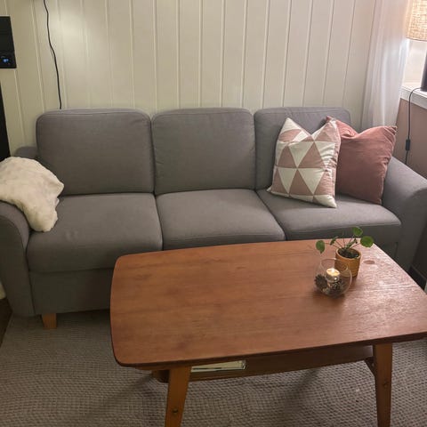 Fin Hødnebø-sofa selges rimelig på grunn av flytting til Sverige. I svært god stand. Myk og behagelig å sitte i. Ingen flekker. Ekte dun i fyllet i putene.