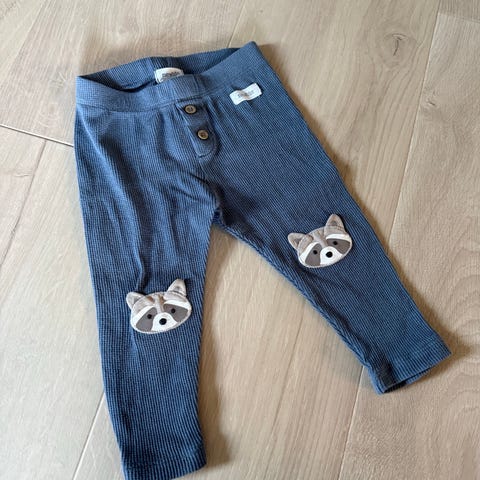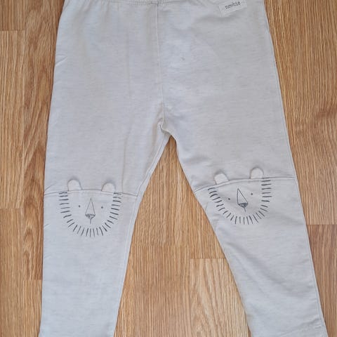 H&M leggings for jente i størrelse 68. Bukse i grå bomull med strikk i livet for god passform. Søte kaninører og ansikt på knærne.