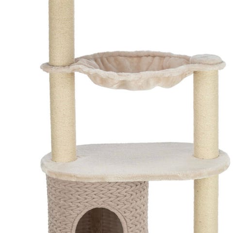 Klorestativet Nox gir din stuetiger forskjellige liggeflater, derunder en koselig koseseng i forhøyet posisjon og en svingbar hengekøye. Det romslige huset egner seg ideèllt som tilbaketrekkingssted. FLere stammer innbyr til ivrig kvessing av klør. De er omviklet med natursisal og har plysj-ender. Kloretreet Nox er svært standfast og egner seg derfor også godt til store og tunge katteraser.