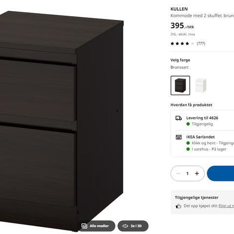 2 stk Kullen nattbord til salgs