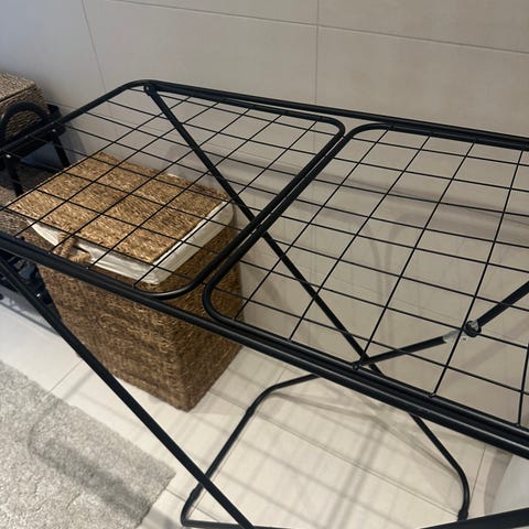 Clothes Rail klesstativ i metall. Stativet har en bredde på ca. 90 cm, dybde på ca. 45 cm og høyde på ca. 175 cm. Utførelse i svart metall med en horisontal stang for oppheng av klær på kleshengere. Egnet til oppbevaring av klær i garderobe, soverom eller entré.
