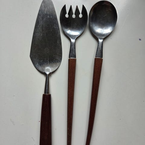 I god stand. Sausøse 350kr, spade 250kr, salatbestikk 150kr per del. Sender med posten, kjøper betaler frakt.