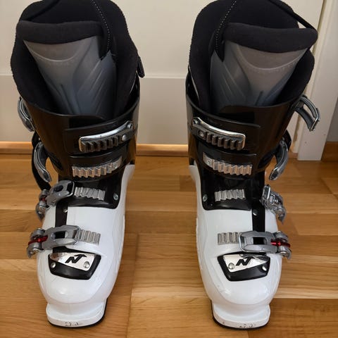 Selger et par Nordica ONE alpinstøvler i størrelse 27/27,5 (tilsvarer ca EU 42–43). Nordica NXT alpinstøvler i svart. Støvlene har sålelengde 315 mm og er merket størrelse 270–275. Modellen har fire justerbare spenner og powerstrap øverst for bedre tilpasning rundt leggen. Passer til vanlige alpinbindinger og er egnet for bruk i alpinbakke. Flex index 45 som passer svært godt for nybegynnere eller fritidskjøring Overskrift: