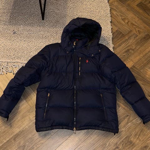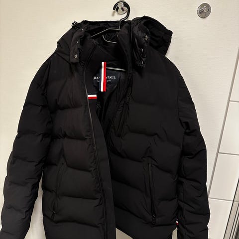 Jean Paul vinterjakke for herre i størrelse M. Jakken er blå og fylt med dun. Den har hette og glidelås foran. Ytterstoffet er glatt, og jakken har lommer med glidelås. Egnet som varm ytterjakke i vinterhalvåret.
