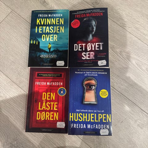 Bokpakke med flere titler innen krim og romaner på norsk. Inneholder blant annet bøker av Freida McFadden, Stian Hjelvin Andersen, Colleen Hoover, Holly Miller, alle er pocketutgaver og lest en gang . Selges samlet som én pakke.