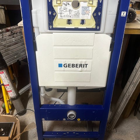 Kjøpt komplett på finn da vi kun hadde behov for toalettet. Selges med trykkknapp/spyleknapp.