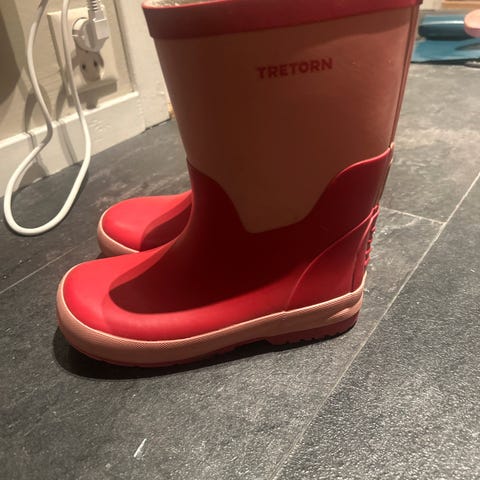 Tretorn gummistøvler for barn i størrelse 32. Unisex-modell i rosa og marineblå farge med lys kant øverst. Støvlene er laget i vanntett materiale med såle som gir godt grep på vått underlag. Passer til bruk i regnvær, på lekeplassen og på tur der det er vått og sølete. Innvendig tekstilfôr for økt komfort ved bruk over tid.