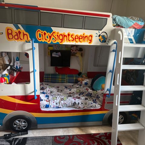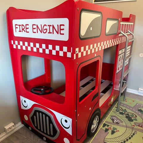 JLY køyeseng utformet som en rød brannbil. Sengen har to liggeplasser, en nederkøye og en overkøye med sengehest rundt for økt trygghet. Fronten er utformet som førerhus med ratt og utskårne vinduer. Yttersidene har trykk med brannbilmotiv og teksten «Fire Engine». Det er fastmontert stige i metall på siden for adkomst til overkøyen. Passer som barneseng på barnerom og gir både soveplass og lekemiljø i ett møbel.