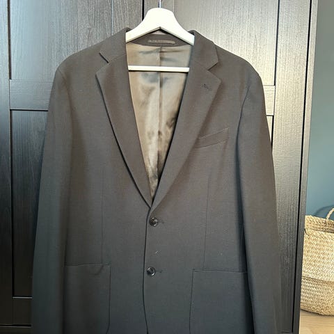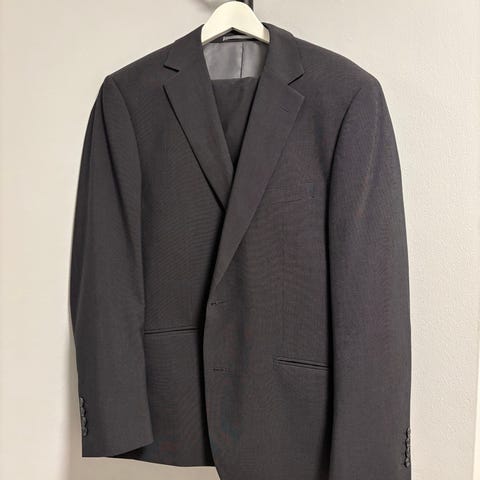 Dressmann dressjakke slim fit for herre i størrelse 52. Jakken er svart og laget i polyester. Modellen har klassisk jakkeslag, brystlomme og frontlommer. Innsvinget passform (slim fit) gir et smalere snitt. Egnet som del av dress eller til penere anledninger. Brukt en gang i begravelse.