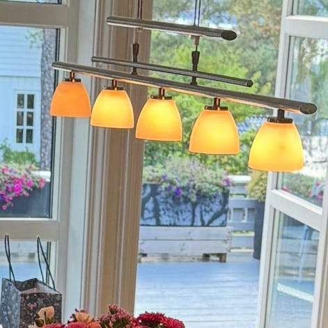 Den har vært brukt over spisebord (se bilder) og fremstår i veldig god stand.