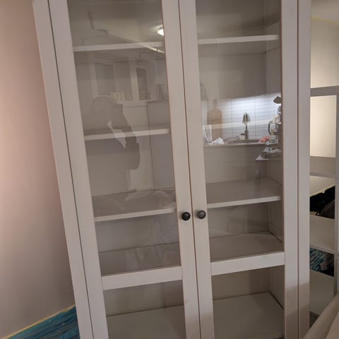 Høyskap med glass hyller og dør på nederste hylle 40x35x195 cm