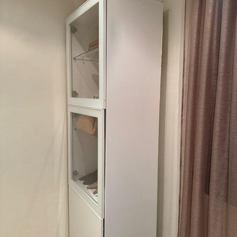 Dette høye skapet bruker plassen i høyden til oppbevaring og tar opp lite gulvplass.