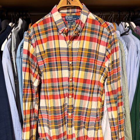 Ralph Lauren skjorte for herre i størrelse L. Skjorten er flerfarget med rutemønster og er laget av bomull. Klassisk modell med krage og knapper i front, samt lange ermer med mansjetter. Passer til både hverdagsbruk og mer formelle anledninger.