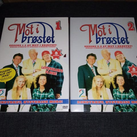Denne innholdsrike DVD-boksen inneholder alle åtte sesongene av Mot I Brøstet fordelt på 16 disker, i tillegg til bonusmateriale med bloopers og bakom Mot I Brøstet.