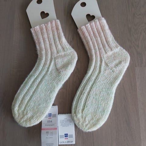 Hjemmestrikkede ullsokker med hjerter. Str 37