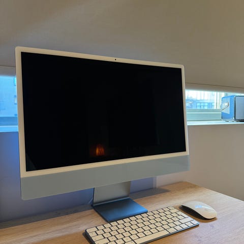 Apple iMac stasjonær PC i sølvfarge. Modellen har innebygd skjerm på 24 tommer og leveres med matchende tastatur, mus og strømadapter slik det vises på bildene. Alt er integrert i skjermen, slik at datamaskinen tar liten plass på pulten. Egner seg til generell bruk som kontorarbeid, skolearbeid, nettlesing og mediebruk. Ytterligere tekniske spesifikasjoner som prosessor, lagringskapasitet og minne fremgår ikke av bildene og bør eventuelt oppgis av selger.