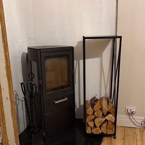 Vedstativ frittstående metall svart & peis tilbehør