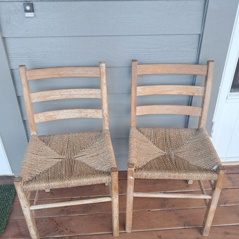 To gamle "tidlig camping" stoler. Trolig 30- tidlig 50 tall ? Passer til tur med veteranbilen eller som pynt - blomsterbord osv....