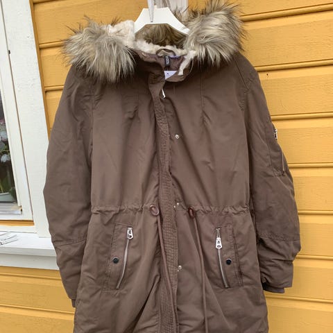Pent brukt parkas fra Cubus. God og varm jakke med snøring i livet og avtakbar fuskepels på hetta. Nydelig varmbeige farge.