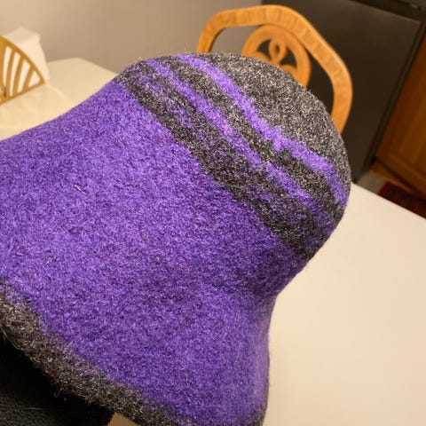 Damehatt fra designer Lisbeth Monsen, ull, mørk grå, mørk grønn, burgunder - lett å forme