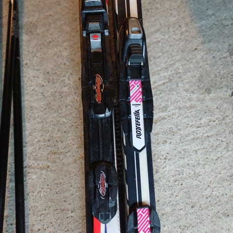 Langrennski (98 cm) og staver (78 cm) selges samlet.