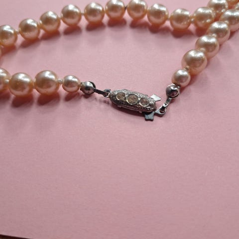 Vintage perlesmykke/anheng i nydelig dus rosa selges til god pris!