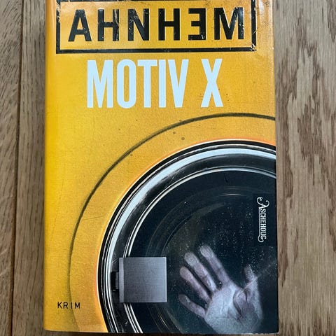 Stefan Ahnhem Motiv X bok i krimsjangeren. Innbundet utgave på norsk. Boken er en del av serien om Fabian Risk og utgitt av Bokklubben/Aschehoug. Passer for lesere som liker nordisk krim og serieromaner.