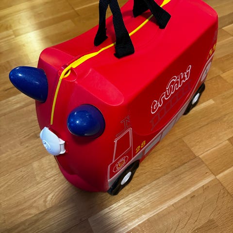 Trunki Trunki barnekoffert i blå plast med fire hjul og glidelåslukking. Kofferten er utformet for barn og har bærehåndtak og trekkstropper som gjør den enkel å frakte. Plastmaterialet gir en lett og robust konstruksjon som tåler bruk på reise. Egnet som håndbagasje for barn på tur og oppbevaring av leker og klær.