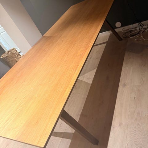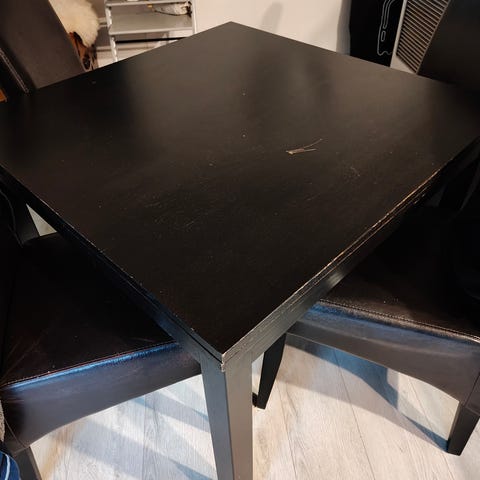 Gir bort ett hjemmelaget bord. Trengs litt jobb for å få strøkent. Topp plata er buet seg, det kan trenges å høvles litt og lakkeres opp på nytt. Er laget med heltre på sidene og støpt betong i midten. Er ett tungt og solid bord.