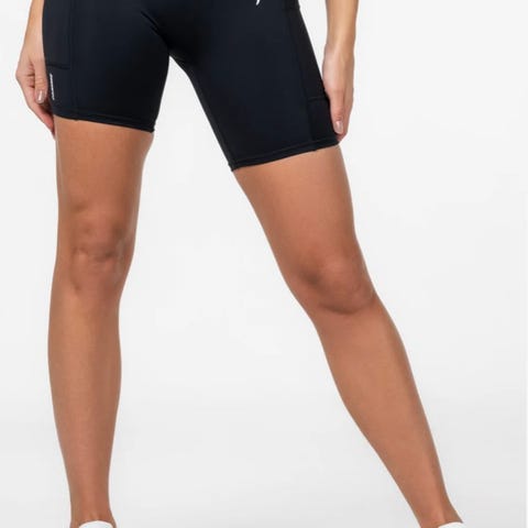 Levity treningshorts for dame i størrelse M. Lang modell som går til midt på låret med gummibånd nederst for å unngå at den kryper oppover. Svart elastisk materiale egnet for fitness og annen trening. Bred linning i livet for god passform, og justerbart bånd på innsiden. Diskré logo foran på låret og scrunch bak. Passer til innendørs og utendørs treningsøkter.