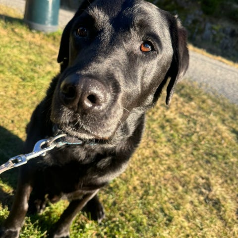 Med tungt hjerte må jeg dessverre finne et nytt hjem til min flotte labrador. Dette er en herlig, snill og lojal tispe som elsker mennesker og trives godt både på tur og hjemme med familien.