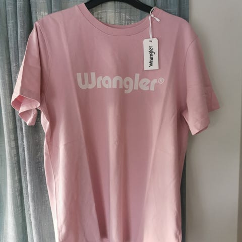 Selger en Wrangler T-skjorte i størrelse M. T-skjorten er lite brukt og fremstår som pent brukt uten synlige flekker eller skader.