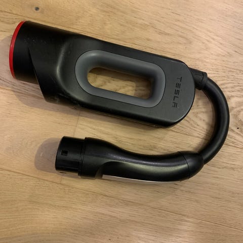 Tesla original overgang/adapter for Chademo + Tesla ladekabeladapter for tilkobling av elbil-lader til CEE-kontakter. Adapteren har blå CEE-plugg merket 250V 32A. Utført i plast med gummiert grep for enkel håndtering. Egnet for bruk sammen med kompatible Tesla-ladere og installasjoner som støtter 250V 32A CEE-tilkobling. Passer til innendørs eller utendørs bruk der det er lagt opp til denne typen kontaktstandard, i henhold til gjeldende elektriske spesifikasjoner og forskrifter.