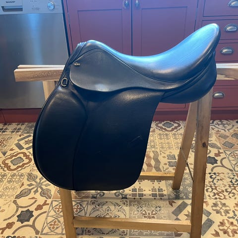 Selger Prestige Arezzo sprangsal til redusert pris pga et slitemerke på høyre kappe. Ellers i fin stand. Bomstørrelse: Vid (35,5) 17’’ i setet. Sort.