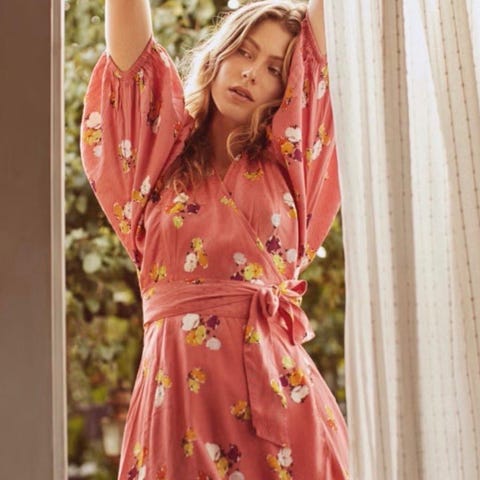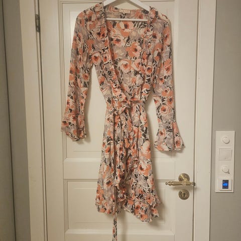 Omslagskjole fra ByTiMo i velour 🤎 Fargen er en gammelrosa. Str. M, vil si den er litt liten i størrelse, så passer nok best en liten M. Pent brukt og i bra stand.