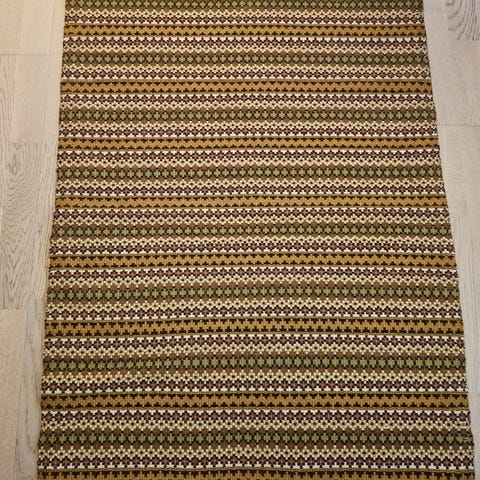 Vevd med ull på en renning av lin eller bomull.