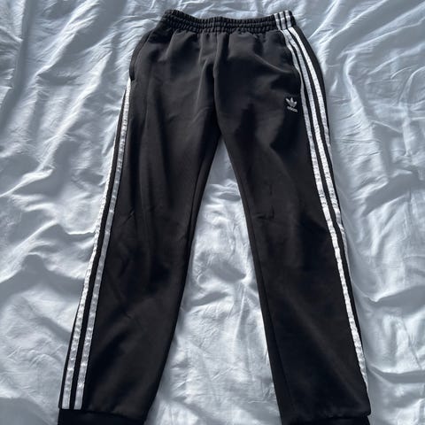 Modellen er kjent for sitt glatte, silkeaktige materiale som ofte beskrives som "wet look" eller satin. Den har de klassiske tre stripene langs sidene, en elastisk midje med snøring, og den ikoniske adidas-trefoil-logoen på låret.
