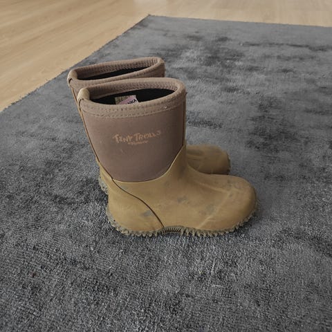 Nesten ubrukte støvler fra tiny trolls i størrelse 22. Hard såle, men myke øverst mot leggen. Brun/grønn farge.