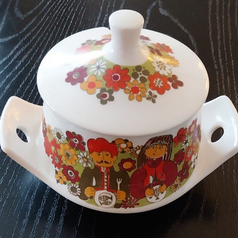 Figgio Flint Turi Folklore Sildeterrin + 2 smørkrukker, uten skader! 1960's